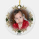 Baby's First Christmas Ornament. Add your photo and information for a unique and personal touch. The reverse side of the ornament has a watercolor image of the Blessed Mother Mary and Baby Jesus.
