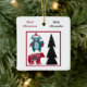 Customized Name for Baby's First Christmas Ornament with your choice of font style, format and cute Nordic folk art. Make it an annual celebration of togetherness and merry making this Christmas. This ornament contains an artistic Nordic Racoon, Bear and Christmas Tree illustrations. Looks elegant and classy in a square Christmas ornament design. You will love it to hang it on your Christmas tree. Perfect Gift for a baby of friend or relative.