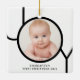 This stylish Baby's First Christmas Photo Ornament is decorated with the word JOY in black on a white background.