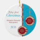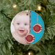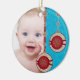 The text and photo on this Baby's First Christmas ornament are easy to customize. Non-traditional red, aqua blue, and gold Christmas tree ornaments design. Make sure to check out the back as well, as there you can customize it with your baby's name! To change the text and photo use the personalize options. For more extensive changes to the ornament, including changing the font, font size, font colour, text placement, picture size and/or picture placement, use the customize it option. A pretty baby's 1st Xmas ornament.