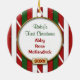 Adorable round ceramic Baby's First Christmas custom photo frame ornament. The front has a place for your own uploaded photo and the year, while the back is ready for you to personalize with baby's name and year as well. Makes the perfect gift for new parents grandparents and will be a treasured keepsake year after year.