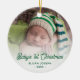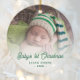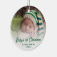 Celebrate your newborn's first Christmas with this personalized keepsake ornament. The green text reads "Baby's 1st Christmas" in stylish retro handwriting script. Replace the sample image with your favourite photo, and add baby's name and the year. A white gradient filter helps make the text pop.