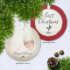 Commemorate your precious bundle's First Christmas with our personalized and dated newborn keepsake ornament. The front side of our ornament displays your newborn's photo and name with a cute little watercolor holly berry in red and green. The back displays "First Christmas" in modern script typography, the year, repeats the photo faded in the background, and has a matching watercolor holly branch. #BabysFirst #FirstChristmas #Ornament