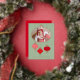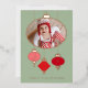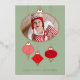 A simple modern holiday photo card with red JOY ornaments on a sea foam green background. Real metallic gold foil accents the ornaments, text and you newest family member's photograph with a luxurious shine for sharing those precious memories.