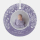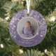 Round glass Christmas tree ornament features your baby's photo surrounded with white leaves, berries and dots on a lavender background. TIP: Upload a high resolution, photo that features the baby in the middle. Ornaments make memorable gifts for family and friends or create for yourself. MORE colours in our store.