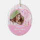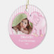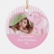 Cute Photo Christmas Ornament featuring an adorable pink toy elephant set on a pink & white striped background, just add YOUR PHOTO! Perfect for first christmas & second christmas. A Wonder Christmas gift sure to be treasured for many years to come.