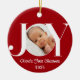 Celebrate your baby’s very first Christmas with this beautiful personalized “JOY” photo ornament! Featuring your little one’s picture inside the “O” and customizable text for name and year, this red and white keepsake adds a heartfelt touch to your holiday tree. Perfect as a cherished gift for parents, grandparents, or godparents — a timeless decoration you’ll treasure for years to come.