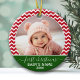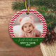 Baby's First Christmas Photo red chevrons green Ceramic Ornament