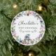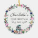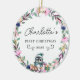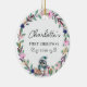 Commemorate your baby's first Christmas with this elegant, customizable round ceramic ornament. The design features a charming, minimalist wreath with a sweet penguin, gift packages, handwriting font, offering a blend of rustic simplicity and timeless elegance. In the centre of the wreath, you can personalize the ornament with your baby's name, beautifully showcased in a delicate script font.
