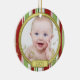 The text and photo on this Baby's First Christmas ornament are easy to customize. The festive red, green, and gold candy stripes and musical notes makes this a pretty and traditional Baby's First Christmas ornament. Make sure to check out the back as well, as there you can customize it with your baby's name! To change the text and photo use the personalize options. For more extensive changes to the ornament, including changing the font, font size, font colour, text placement, picture size and/or picture placement, use the customize it option.