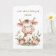 Celebrate baby’s adorable milestone with this sweet design featuring a wide-eyed baby cow sitting up for the first time. Set outdoors with soft greenery surrounding the little calf, the artwork radiates warmth and cuteness. The front reads “Look Who’s Sitting Up!” with a space to write the baby’s name and special date, making it a wonderful keepsake for parents. A thoughtful way to mark one of baby’s exciting firsts in a memorable and personal way.
