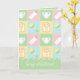Four squares in soft pastels of pink, green, blue, and yellow are framed by a white design like stitch marks and decorated with cute, baby-themed icons of a bottle, diaper, rattle, and bib. A bright blue, pink, and yellow pacifier adds a fun final touch to the back. Customize the sentiment on the overlay panel on the front and in the interior with your message of choice to create a truly unique card for any baby shower or expectant mother. You can also swap to the note card size to easily turn this into a sweet thank you card for after the shower. Be sure to check out the full Baby's Quilt collection for more great gifts and products for a baby shower or the little one in your life.