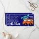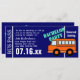 Orange bus and royal background colour. Create your own itinerary on this bus pass, change ticket colour too.  Customizable for any event.