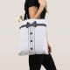 Inspired by the white dress shirts that you would wear with a tuxedo, add the name of your Groomswoman and The Happy Couple's initials to this funny black and white tote bag. Makes a fun wedding gift for any member of the Wedding Party