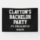 Annoncez la célébration ultime avec notre "Bachelor Party In Progress Banner". Customisez-le avec le nom du futur marié et la date de l'événement. Faites savoir à tout le monde que la fête est allumée, et préparez-vous pour une nuit de plaisir. Commandez notre bannière personnalisée aujourd'hui et faites de la dernière nuit du marié un célibataire vraiment spécial!
