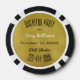 Unique bachelor party invitation done on a poker chip. A gold tone background, on the black and white striped poker chip, with black and white custom text ready to personalize for your event. Fun way to invite guests to your special day.