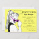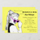 A yellow background with a black and white graphic of a woman in a pony tail and coyly looking over the top of her hot pink sunglasses adorns the front of this invitation. Plenty of customizable text on the front for all your party information! Customizable text on the back for the registry information and driving directions or whatever other information you might want to add. Buy in bulk and save!
