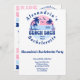 This is a stylish, bachelorette beach party design. It is a front and back design, On the front it has a tropical beach party logo design, with space for the Bride's name, with year and location/ venue of the party, weekend / getaway, with space for you to add your party and RSVP details underneath. On the back it has a retro pattern with the party logo and the text "Bride" in trending wavy typography. To personalize simply add your bride's name and party details using the personalize this text box. For help with personalization, matching products, or for a custom design contact me via zazzle chat.