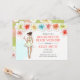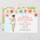 Bachelorette Beach Weekend Getaway Invitation features a tropical theme with hibiscus flowers and brunette bride to be enjoying a cocktail. Available with blonde, brown, red hair girl and with dark or light skin.
