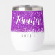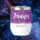 accessory. This violet glitter texture bride's wine tumbler features the bride's name in a modern font, making it a memorable keepsake for the special occasion. All wording is customizable. Don’t hesitate to contact me for any help in customization or if you need any other product with this design.