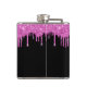 Girly and fun personalized flask for your bachelorette party featuring sparkly hot pink faux glitter dripping down a black background and "Bachelorette Party" in a hot pink script. You can further personalize with your name and party date.