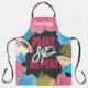 Get messy and bring some colour to your bachelorette paint and sip party with customized painting apron - featuring a rainbow design with hand painted colour swatches of yellow, red, and blue design with personalized name and text saying "paint sip repeat". You can edit and personalize your name on the apron for a cute, unique touch to your special girls night.