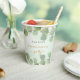 For a Bachelorette party. A green watercolored background with brush strokes and with faux glitter dust. Decorated with eucalyptus greenery, leaves, foliage. Personalize and add the name of the bride to be.