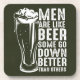 Get the party started with this hilarious beer-themed coaster! Featuring the cheeky quote: "Men are like beer, some go down better than others," this coaster is the perfect addition to any bachelorette party, bridal shower, girls' night out, or wedding celebration.