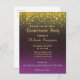 Modern and elegant bachelorette party invitation postcard with gold glitter confetti and a purple and gold background. You can easily customize the text for any occasion. See more at zazzle.com/GlitterInvitations Note: This is a graphic print artwork and there is no messy glitter.