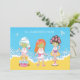 A bachelorette party invitation for a relaxing day at the spa with a sassy trio of ladies. The blonde is enjoying a foot soak with her hair wrapped in a towel. The brunette has a head full of pink rollers while she sips a cocktail and reads a book. The cute redhead has a green mud mask on her face. The background is yellow and blue with soap bubbles. Some graphics by Prettygrafik Design.