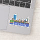 This sticker features an illustration of the skyline of Boston's Back Bay with boats sailing in the foreground on the Charles River. The text "BOSTON" is superimposed over the river in a simple white font.
