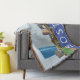Here's a blanket for any Bostonian or anyone who loves the capital of Massachusetts. It features a computer illustration of Boston's Back Bay skyline with the Charles River in the foreground. The text "BOSTON" is superimposed over the river in a simple white font. To change the colour of the sky, click on the "customize" button.