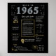 Step back into 1965 with our captivating digital birthday poster, brimming with historical facts, noteworthy events, and intriguing stories from the past. Adorned with elegant gold and silver details against a bold black background, featuring unique symbols and stylish text, this birthday poster exudes timeless charm. Whether sparking conversations at birthday gatherings or cherished as a keepsake, it evokes nostalgic memories.