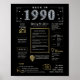Step into 1990 with our captivating digital birthday poster, overflowing with historical facts, significant events, and mesmerizing narratives from the past. Adorned with elegant gold and silver accents against a striking black backdrop, this birthday poster emanates timeless charm.