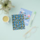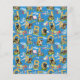 Capital letters A B C D E F G H I J...house pets and school tools against a blue sky repeat pattern