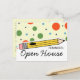 A postcard featuring a design on front consisting of polka dots in various sizes an colours and a yellow pencil. Text reads "REMINDER: Open House." Personalize the back with details of your event.