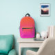 Lightweight and durable, our custom all-over-print Backpack is just what you need. The spacious interior is ideal for travel, school, gym, or any mobile storage need. Bring your stuff with you in style! Features Adjustable padded shoulder straps, two chambers on the inside for laptop storage, mesh side pockets and an identification label.