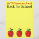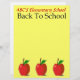 Easily personalize this bright and cheery custom letterhead stationery with any school or any teacher's name. Original illustration with three red apples each with a green leaf on the bottom. Lots of copy space to write on later. Great personal gift idea for teachers, and school administrators. "Back To School" text is part of the design with the apples. The yellow background colour can be changed easily.