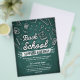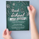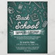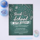Promote your back to school supplies giveaway with this creative flyer featuring a green chalkboard background, white school supplies and star illustrations, chalk streak & cursive "Back to School" typography. Customize template to your liking.