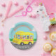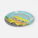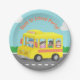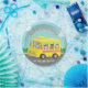 A yellow school bus with happy and smiling kids on board. The kids are delighted to be going to school to learn and catch up with friends! These paper plates are perfect for a back to school party or a bus themed party! Personalize with your party message.