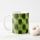 Background texture of dark green capitone genuine coffee mug