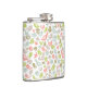 background with colourful birds ornament hip flask