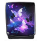 Black background with glowing night butterflies. Night butterflies. Design with butterflies.