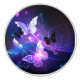 Black background with glowing night butterflies. Night butterflies. Design with butterflies.
