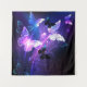 Black background with glowing night butterflies. Night butterflies. Design with butterflies.