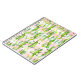 background with watercolor illustration of green geckos ang leaves on pink stripes