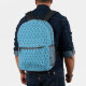 Hexagons, bars, triangles, circles, stars ... Dark blue "picture" text is used for the replicated design on a light blue background. The hexagon shape has triangles at the corners with bars connecting. Central hexagon is in the dark colour, with a starburst in middle. Customizing "text" colour will show that colour in place of the blue, changing the background colour will replace the light blue.