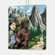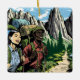Backpacking Couple Hiking Trail through Mountains Ceramic Ornament