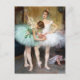 A fine art postcard by the French artist Pierre Carrier-Belleuse (1851-1932) titled, Backstage at the Ballet (1890). Belleuse was renowned for his ballet scenes and pastels. The postcard depicts two ballerinas preparing for the stage, one in a green tutu and the other in a white tutu, with ribbons around their waists.