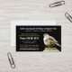 This eye catching business card makes a great first impression for any wild bird business supplying birdhouses, birdfeeders, or bird seed for wild outdoor birds or supplying the hobby birdwatchers. Suitable also for rescues or rehabilitation programs. Black background, with a nice photographic portrait of a song sparrow (identified as a white crowned sparrow) and easy to read text in white and matching yellow green colour similar to the moss or mildew discoloring the rural fence post top on which the bird sits. Multiple fully customizable text fields so you can completely personalize it with your own professional or personal contact information. Photo taken in southern British Columbia April 2010.